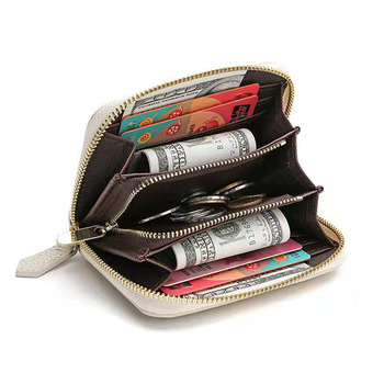 محافظ من جلد البقر الطبيعي للرجال والنساء محفظة ائتمان قصيرة بسحاب حول حقيبة صغيرة