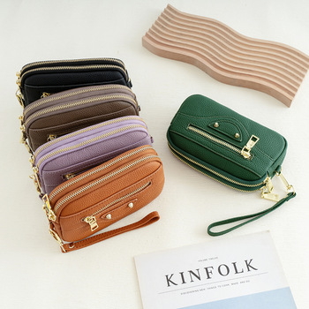 Mini bolso de mano para mujer, monedero con cremallera de cuero de vaca suave, colgante portátil, para niñas, almacenamiento de auriculares, novedad de 2025